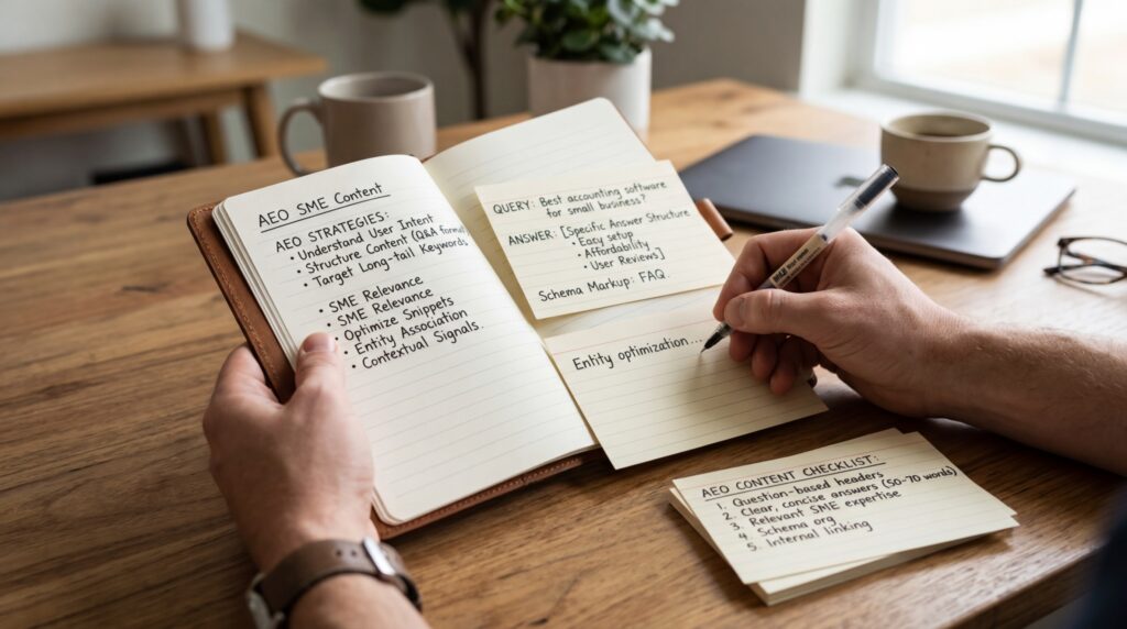 AEO for SME content isn’t about chasing trends. It’s about making sure the genuine expertise you already have is presented in a way that AI tools can read, understand, and recommend.